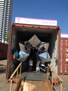 第1部漢字のコンテナです。滴仙会より4名が選抜されました。今回の作品サイズは90㎝×180㎝の統一サイズです。